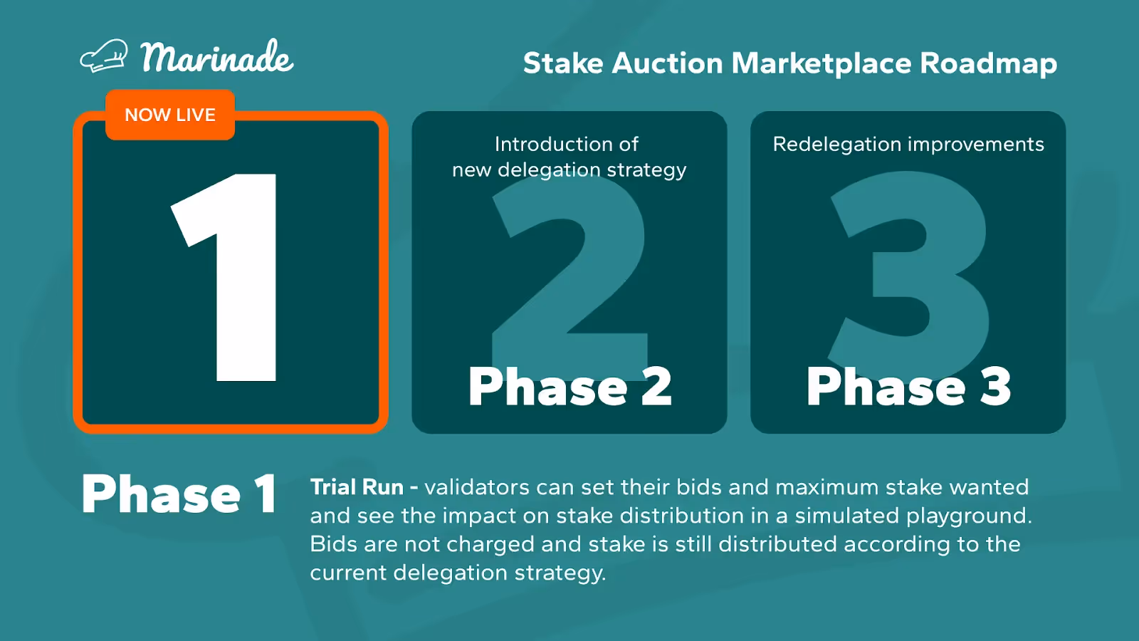 - Marinade v2 officially announced, ushering in a new era for permissionless SOL staking. Benefits of v2 include native staking, protected staking rewards (PSR), and the stake auction marketplace (SAM).