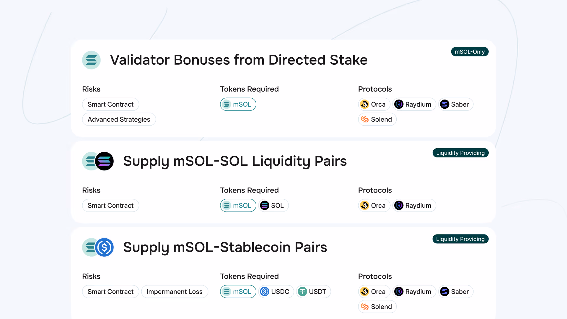 - Price Risk of Staked SOL Tokens: While mSOL typically appreciates relative to SOL, liquidity conditions in DEX pools might cause slippage or temporary imbalances.